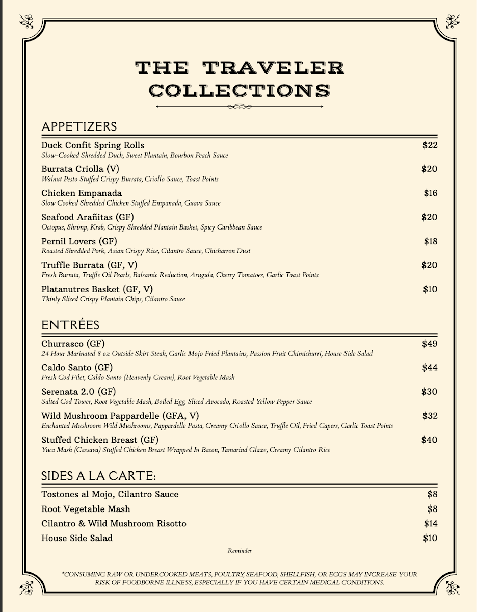 Introducing The Traveler Collections, a culinary haven nestled in the heart of Fredericksburg, TX. This vibrant new eatery, located at 418 E Main St, entices food lovers with its unique fusion of Puerto Rican flavors and diverse culinary inspirations. Reviewers rave about the exceptional menu that features standout dishes such as the Pernil Lovers—a savory pork atop crispy Asian rice, and exquisite tapas like duck confit spring rolls and seafood aranitas. Each plate is crafted from fresh ingredients, making every bite an adventure in taste.